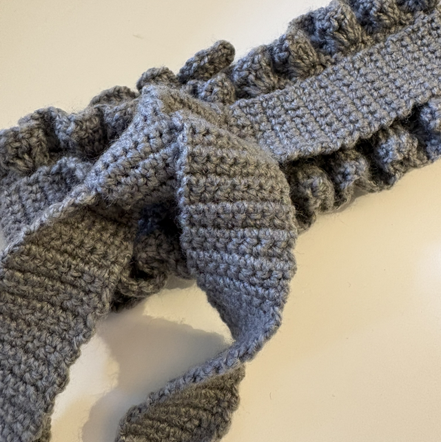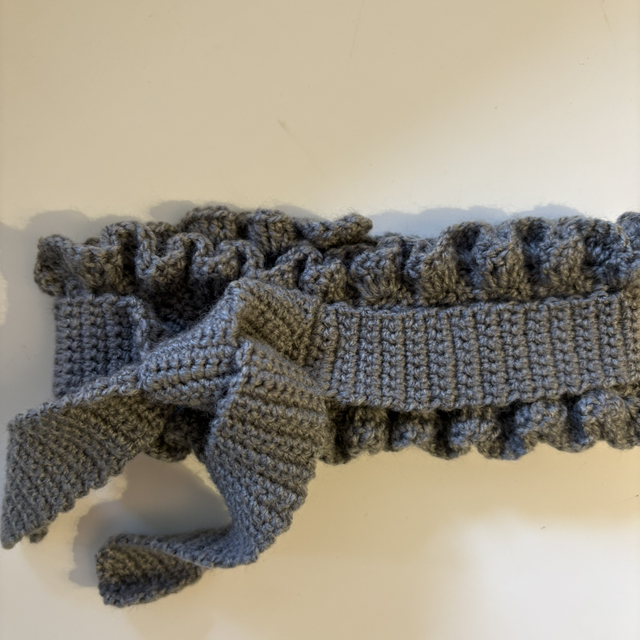 Trabalhada manualmente, ponto a ponto, apresenta uma textura rica, babados estruturados e um laço ajustável que permite adaptar ao gosto e ao uso — mais justo ou mais solto.